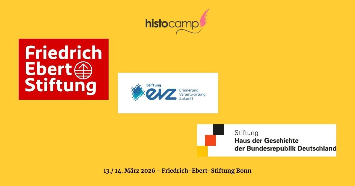 Mit der Friedrich-Ebert-Stiftung als Gastgeber sowie der Stiftung EVZ und dem Haus der Geschichte stehen dem histocamp 2026 drei Institutionen zur Seite, die historisch-politische Bildung und Erinnerungskultur aktiv gestalten.